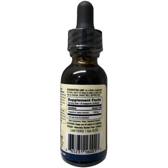 Grapefruit Seed Extract, 100 mg, 1 fl oz Liquid (30 mL); Purified Water; Vegetable Glycerin (Kosher).