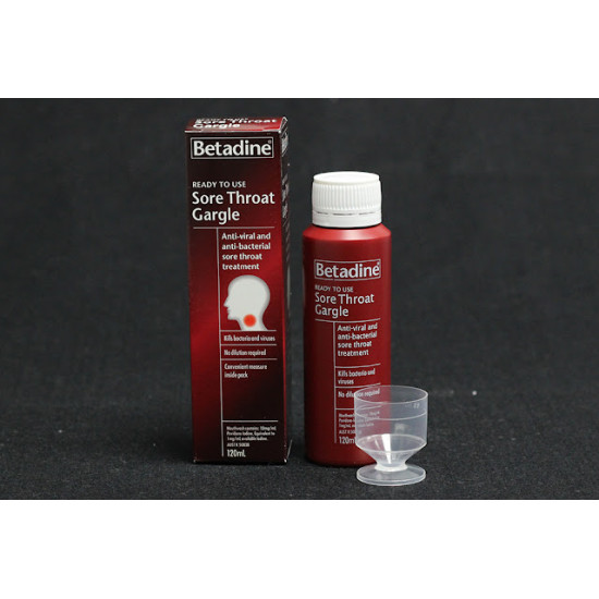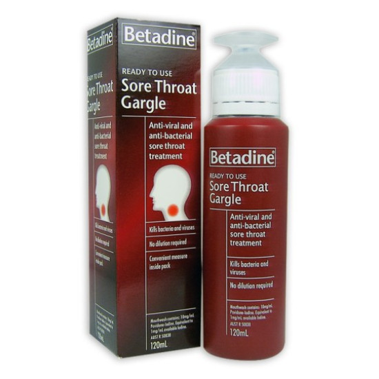 Betadine Sore Throat Gargle is a Ready To Use, anti‐bacterial formula used as an aid in the treatment of sore throats.