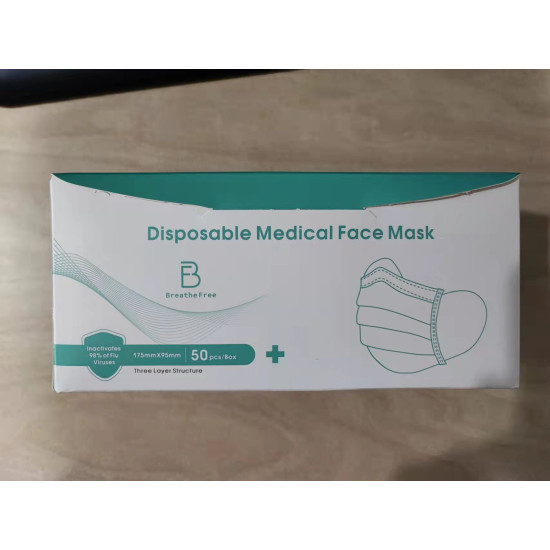 Breathe Free Disposable 3-ply Medical Surgical Face Mask 50 Pieces
