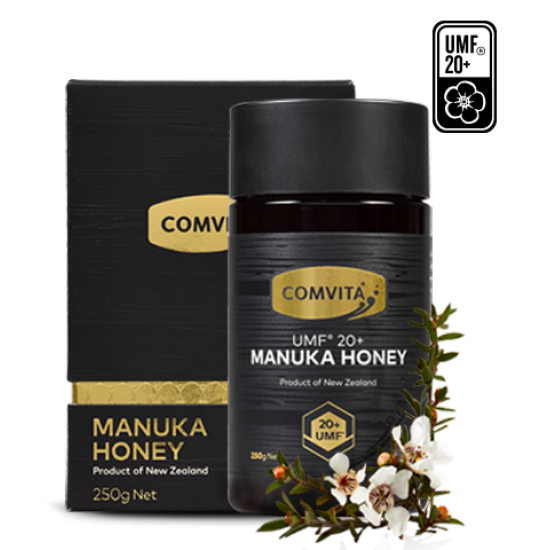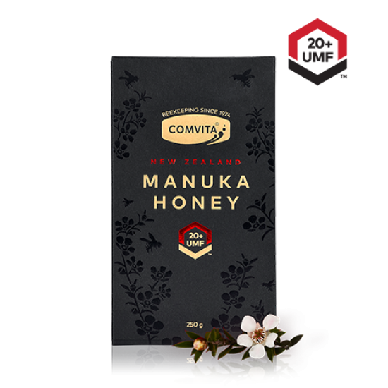 Comvita® UMF™ 20+ Manuka Honey is a rare, high potency Manuka honey produced in New Zealand. Made from the nectar of the Manuka bush (Leptospermum scoparium), which is native to New Zealand; this ultra-premium + Manuka Honey is recognised across the globe for its purity and unique properties.