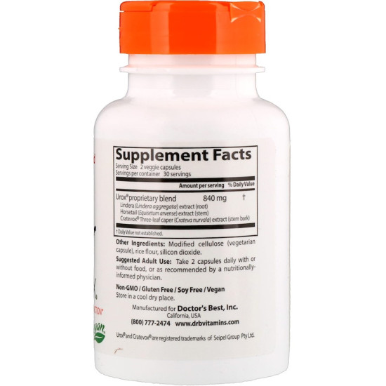 It features Urox® which is a proprietary blend of synergistic Crataeva nurvala, Horsetail (Equisetum arvense), and Lindera aggregata can enhance bladder tone. Horsetail may promote healthy urinary tract function.