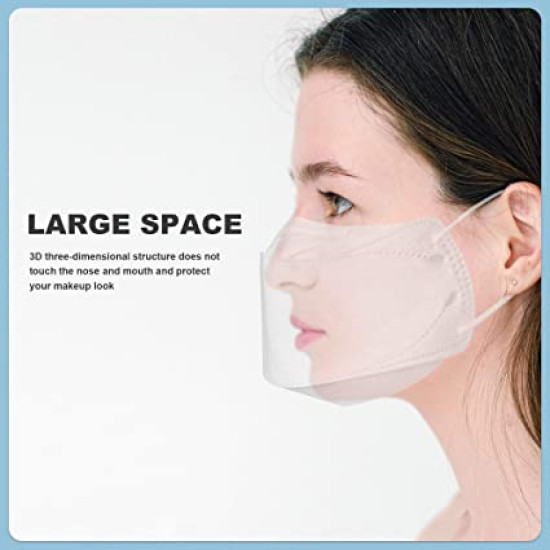 The 3D ergonomic structure trifold design provides a tighter, safer fit around the nose and cheeks and chin. At the same time, keep a proper space inside the mask so that you can breathe and speak easily. By the way, it works well for you protecting your makeup!