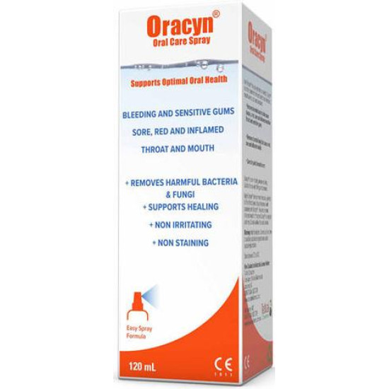 Oracyn is a fast acting spray that reduces symptoms, reduces bacteria and fungi, does not contain alcohol or other irritating ingredients.