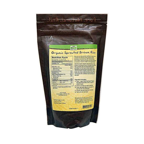 NOW Real Food® Organic Sprouted Brown Rice contains wholesome young rice grains that have been sprouted and harvested at the peak of perfection for maximum nutrient content and digestibility.