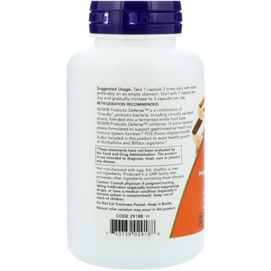 NOW® Probiotic Defence™ is a combination of "friendly" probiotic bacteria, including clinically validated strains, blended into a fermented whole food base.