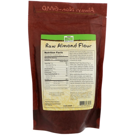 NOW Real Food® Raw Almond Flour is 100% pure, unblanched, gluten-free, and low in carbs, making it a healthy, and tasty alternative to bleached white flour.