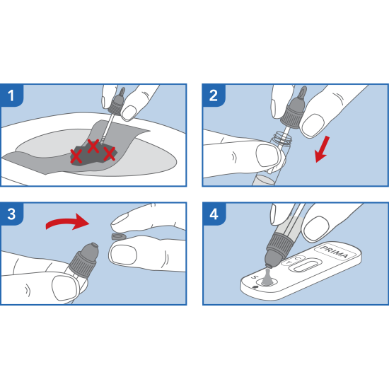 3.Break the end of the cap, freeing the dropper part, and dispense 3 drops of the diluted sample into the well (S) indicated on the cassette;