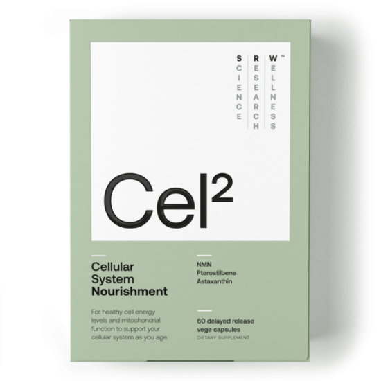 Cel² provides cellular nourishment to support healthy levels of NAD+. NAD+ plays an important role in your cells’ ability to produce energy, repair themselves and communicate with each other. Cel² contains patented NMN, a direct precursor of NAD+.