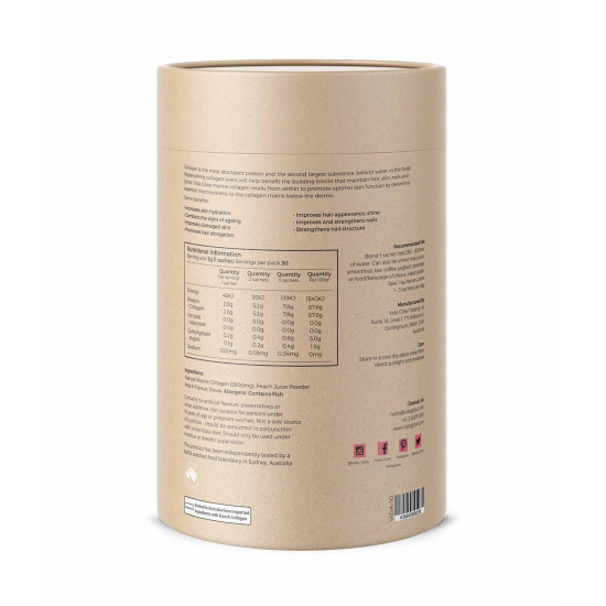 This delicious addition to our range contains natural Peach flavour and natural Peach Juice powder. Peaches are rich in phytochemicals called phenols that act as antioxidants. Both peaches and marine collagen are rich in antioxidants, which are essential for healthy hair, skin, and nails as they help protect cells from damage.