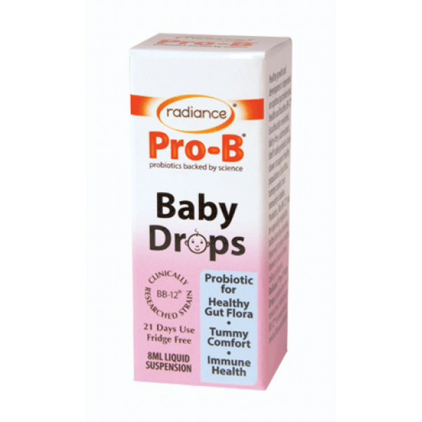 Radiance Pro B Baby Drops 8mlPro B Baby Drops uses a clinically researched probiotic, Bifidobacterium lactis BB-12, a well documented, stable and effective probiotic with proven safety. Pro-B Baby Drops is manufactured in Europe by Chr.Hansen to the highest standards and is safe for..