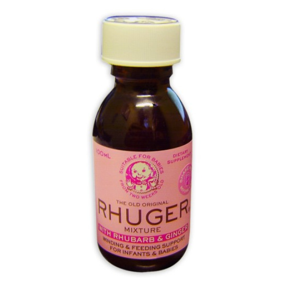 Rhuger Mixture Winding & Feeding Support 100mlThe old original Rhuger Mixture with Rhubarb & GingerContains no artificial colour or flavouring agents. Alcohol, sugar & preservative free.Winding & feeding support for infants & babiesSuitable for babies from two weeks oldDietary Su..