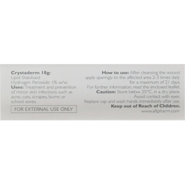 Crystaderm Cream 10gCrystaderm® First Aid Antiseptic Cream provides strong protection against skin infection without a prescription.CRYSTADERM®, hydrogen peroxide 1% w/w, is a over-the-counter first aid antiseptic cream to treat and prevent infection in minor cuts, wounds, grazes and abrasions.Hydro..