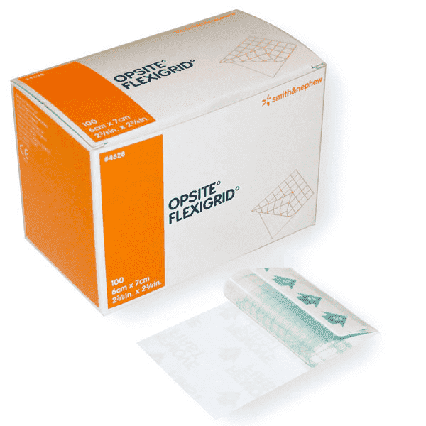 Smith & Nephew Opsite Flexigrid Dressing 6cmx7cm 100 PiecesSuperficial pressure ulcers and their prophylaxis Abrasions and Lacerations Skin grafts and donor sites Post-operative wounds Minor burns and scalds Skin protection around stoma and leg bags Relief of pain in diabetic neuropathy..