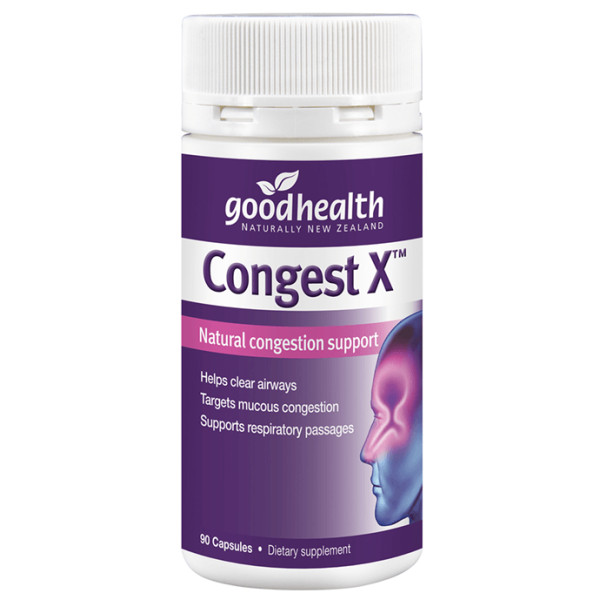 Good Health Congest X 90 CapsulesTargets mucous congestionSupports respiratory passagesSupports clear airwaysGood Health Congest X contains a blend of key herbs and nutrients, including Horseradish and Fenugreek to soothe and clear respiratory passages. Echinacea, Garlic and Vitamin C provide o..
