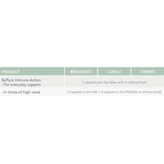 Immune Action can be combined with any other BePure products but it is most effective when combined with the BePure Immunity range.