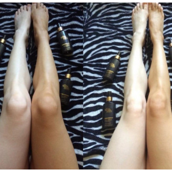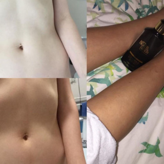 Step 3:Apply Liquid Gold directly onto skin and use the Bondi Sands Self-Tanning Mitt to smooth oil over your legs, arms and body using long sweeping motions. Use remaining tan on mitt for face, elbows and knees.