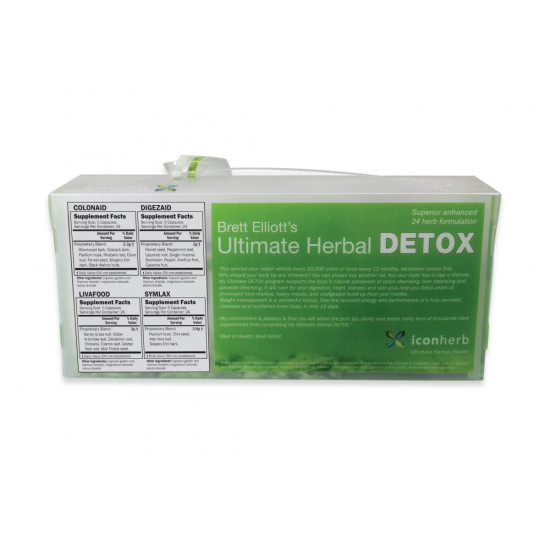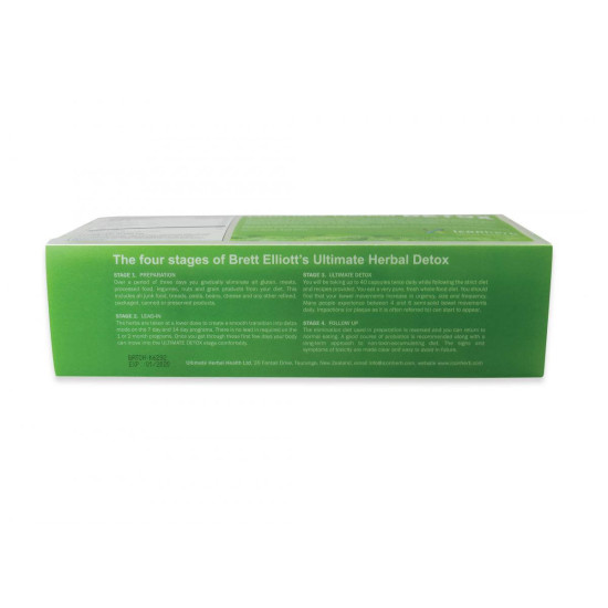 The 15th Anniversary Ultimate Herbal DETOX from Brett Elliott is a natural Colon Cleanse and Herbal Detox program that helps you lose weight and detoxify your body. With a supporting User Guide and Detox Book, Healthy Detox Recipes and enough Herbs for a 7 day, 14 day, full month or even a 2 month program.