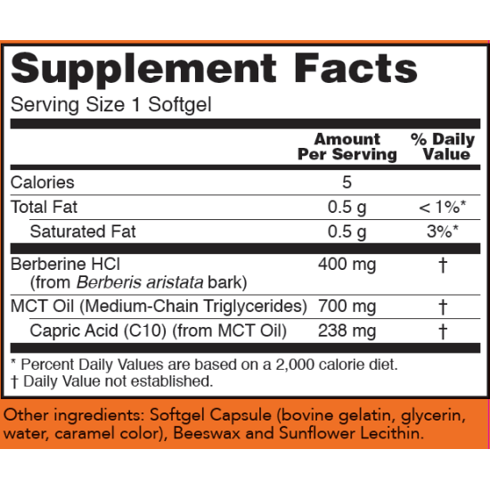 Because berberine is known for its limited bioavailability, this product includes caprate (C10, a medium-chain triglyceride) to promote optimal absorption and maintenance of gastrointestinal comfort during berberine supplementation.