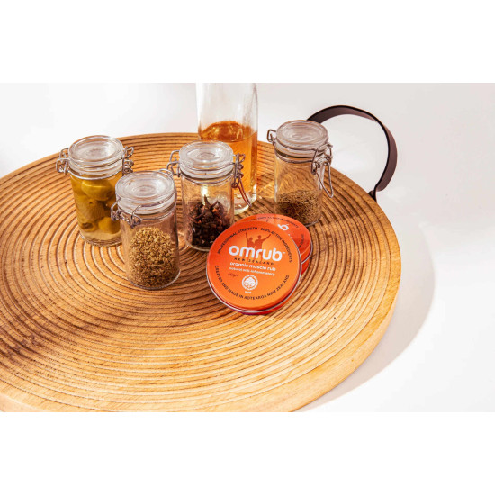Omrub is a concentrated, anti-inflammatory, BioGro certified organic, cruelty free muscle rub.