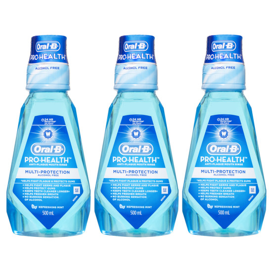 Oral-B® Pro-Health Multi-Protection Rinse is an anti-plaque mouth rinse that freshens breath and fights bacteria without the burn of alcohol.