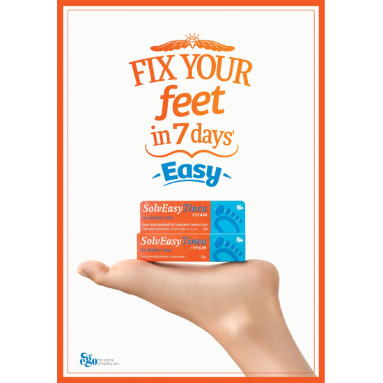 The active ingredient in SolvEasy Tinea Cream remains in the skin and continues to fight infection for more than 7 days after application ceases.