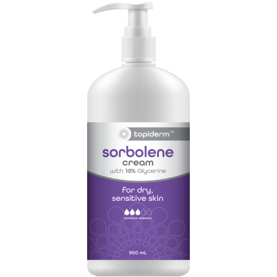 Topiderm Sorbolene Cream with 10% Glycerine soothes itchy, dry skin and helps skin feel hydrated and soft.