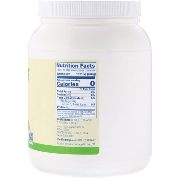 Now Foods BetterStevia Extract Organic Powder 28gWhat is BetterStevia Sweetener?BetterStevia is a zero-calorie, low glycemic, non-GMO, plant-derived sweetener that makes a perfectly healthy substitute for table sugar and artificial sweeteners. Unlike chemical sweeteners, BetterStevia® is a pure..