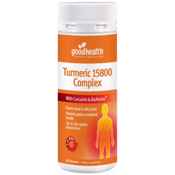 Good Health Turmeric 15800 Complex 90 CapsulesEases Fatigue & stiff jointsAssists gastro-intestinal healthUp to 20x better absorptionGood Health Turmeric 15800 Complex is a potent, comprehensive formula combining Turmeric’s scientifically proven active ingredient, Curcumin, with BioPerine (black..