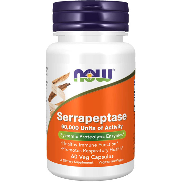 Now Foods Serrapeptase 60,000 units 60 CapsulesSerrapeptase (serratiopeptidase) is a protein-digesting enzyme isolated from the friendly bacterium Serratia marcescens. Studies indicate that serrapeptase is absorbed intact from the digestive tract and that it acts systemically to support healthy immu..
