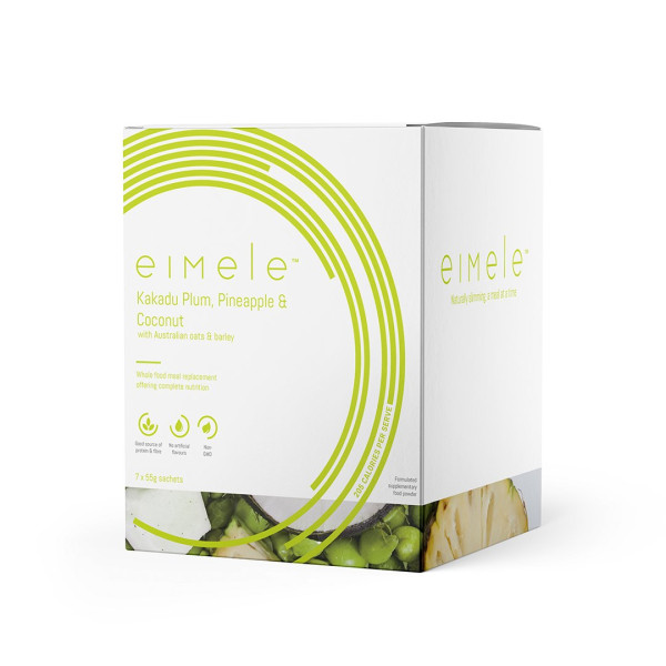 Eimele Kakadu Plum, Pineapple & Coconut Porridge 7 x 55gNatural Slimming, a meal at a timeWeight Management PorridgeKakadu Plum, Pineapple & Coconut with Australian Oats & BarleyWhole Food Meal ReplacementOffering Complete Nutrition205 Calories Per Serve onlyGood Source of protein & ..