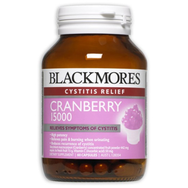 Blackmores Cranberry 15000 60 CapsulesA potent 15 000 mg extract to help reduce the frequency of recurrent cystitis.A concentrated, potent, cranberry extract to promote urinary tract health.Why Use:-Cranberry discourages adherence of bacteria in the urinary tract and promotes urinary tract health-He..