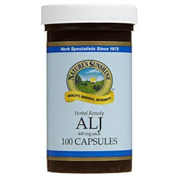 Nature’s Sunshine ALJ 100 CapsulesBenefits:ALJ is an excellent respiratory formula for relieving sinus and upper respiratory congestion associated with allergies. ALJ contains herbs which stimulate perspiration and the production of mucosal fluids to remove allergens and other toxins. ALJ also suppo..