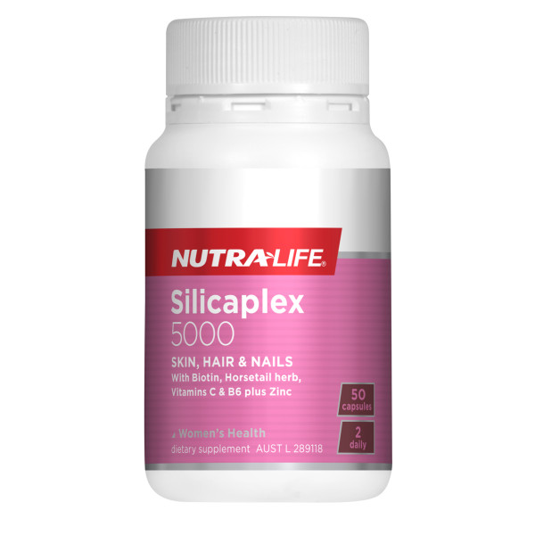 Nutralife Silicaplex 5000 50 CapsulesPlus Zinc, Manganese and Vitamin B6. Skin, hair & nails. Supports healthy hair and skin. Supports strong nails.Why use Silicaplex?This formula provides high-strength Horsetail herb: a natural source of organic Silica; plus the supporting nutrients Zinc, Manga..