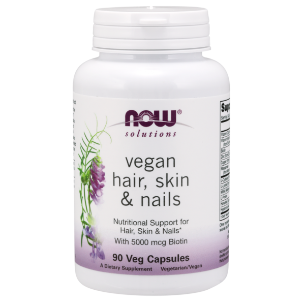 Now Foods Vegan Hair Skin and Nails 90 CapsulesWhat is Hair, Skin Nails Capsules?NOW® Solutions Vegan Hair, Skin & Nails works at the cellular level to promote natural beauty from within. This completely vegan formula offers the amino acids and minerals that are essential for the production..